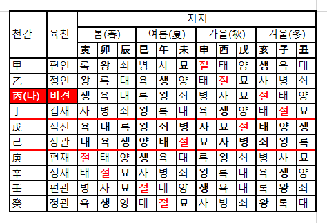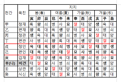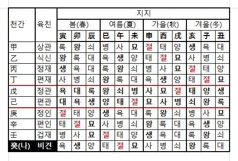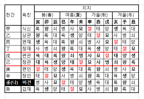 천간에 따른 12운성표를 새롭게 정리해 보았습니다.